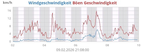 Minimalwert heute: 0 km/h um 05:57:09